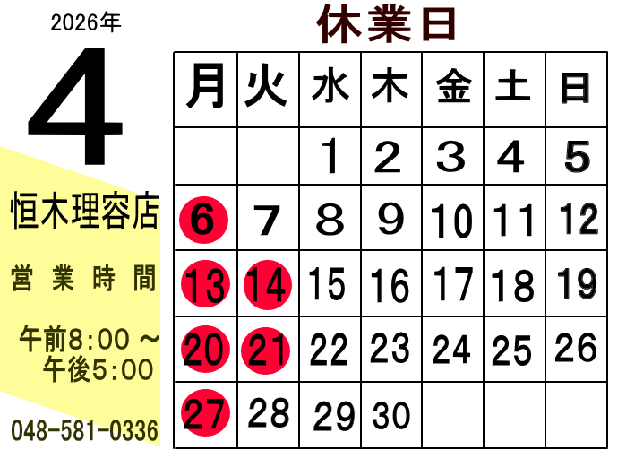 4月の定休日